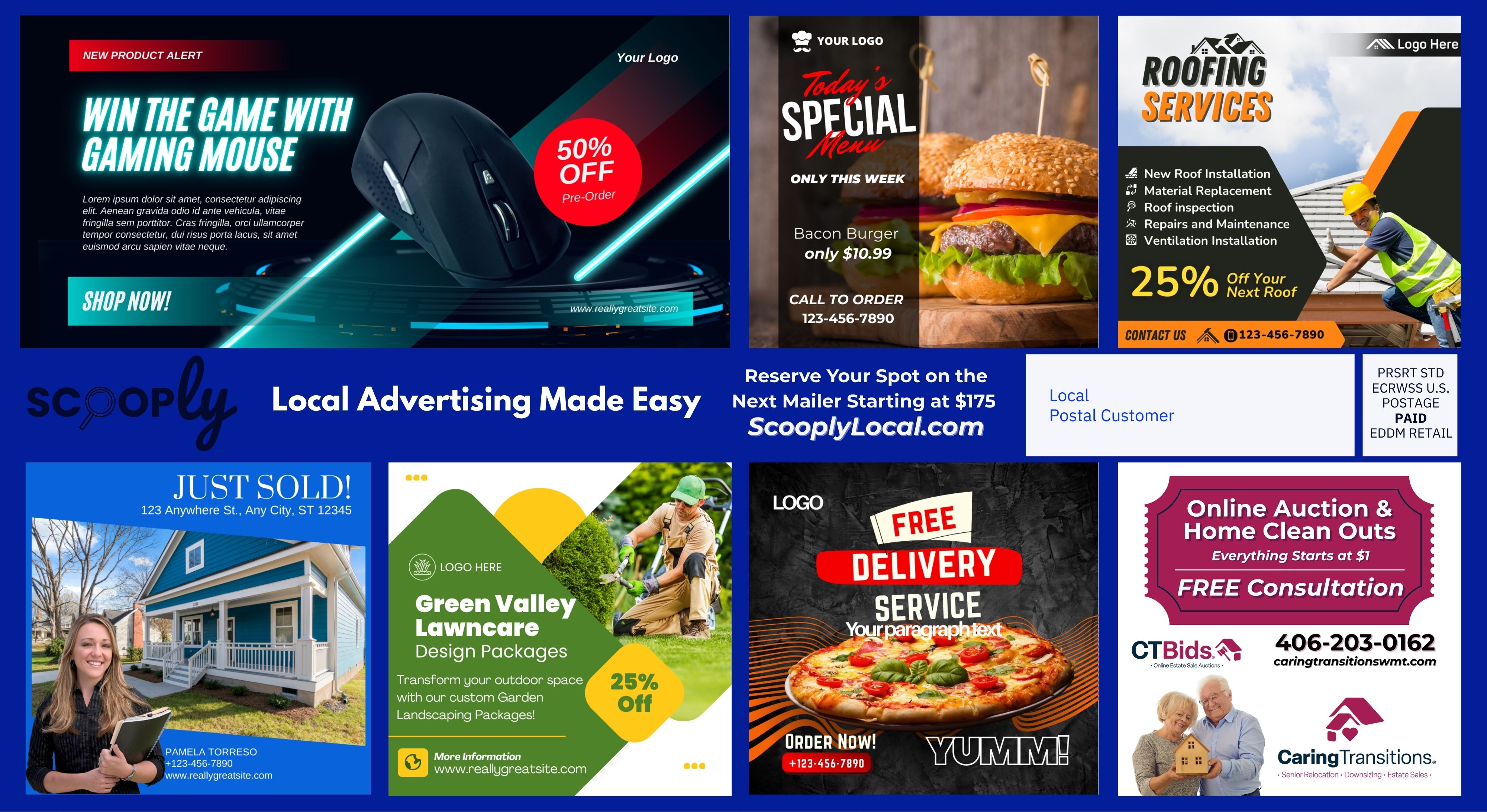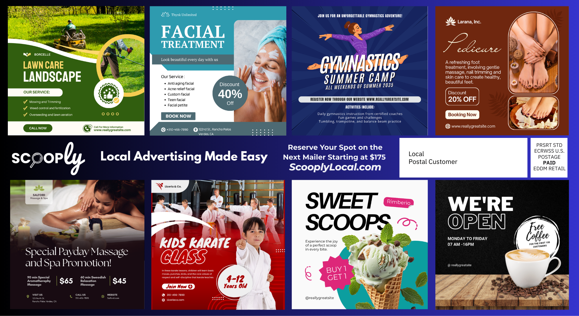 Pick your ad space on the next community postcard mailing.